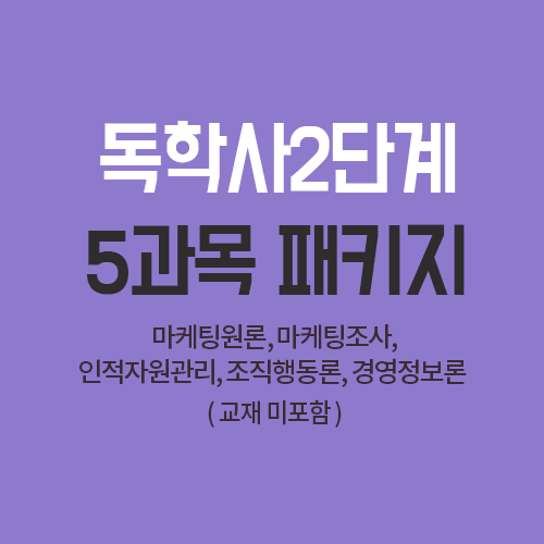2단계 5과목 패키지 : 마케팅원론, 마케팅조사, 조직행동론, 인적자원관리, 경영정보론 (다른 과목으로 변경 가능합니다)